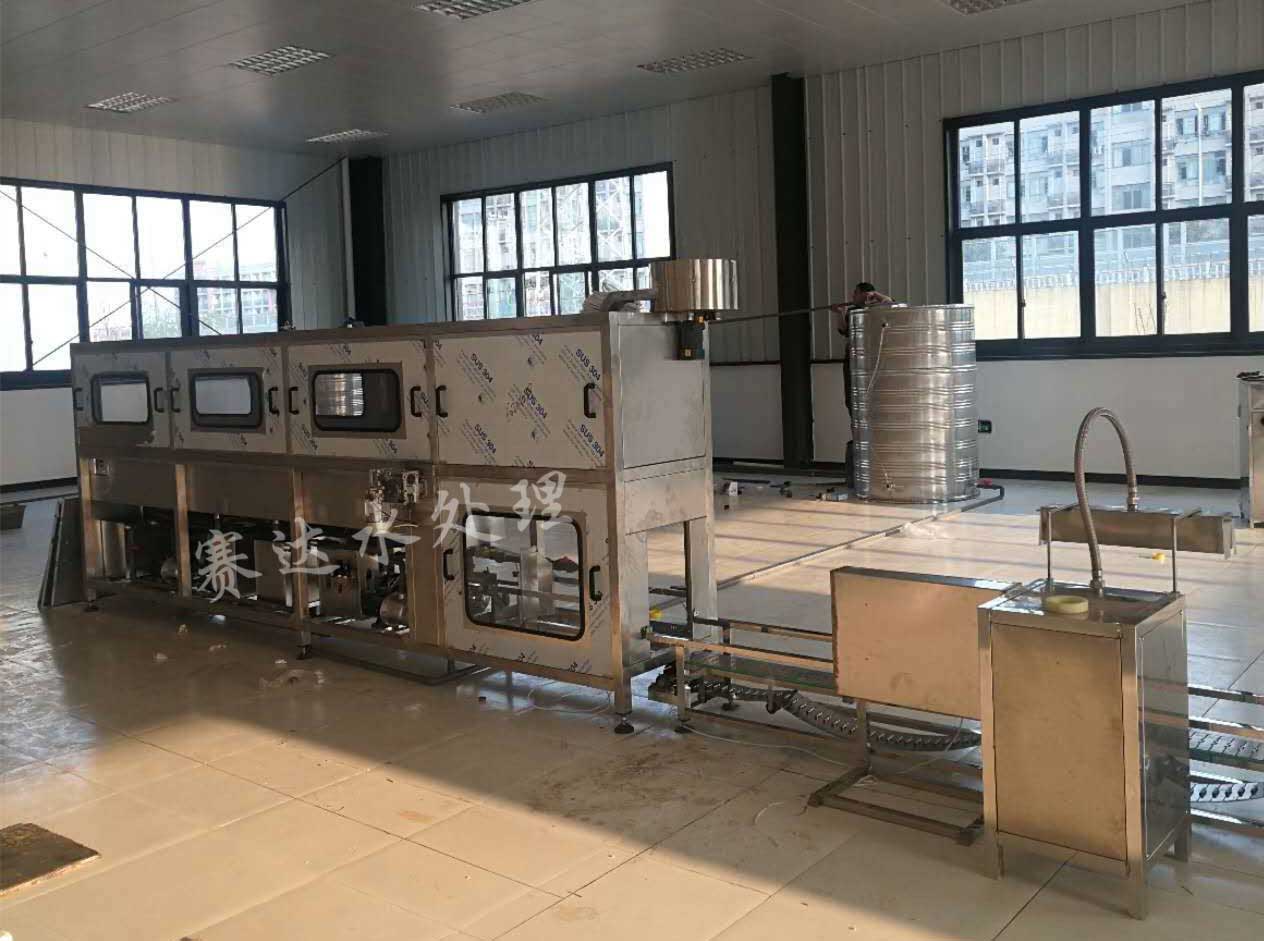 桶裝水灌裝機(jī)集消毒、沖洗、灌裝、封蓋于一體,其沖洗工位為10道:自動上桶、兩道熱堿液噴洗、一道滴干、兩道回水沖洗、兩道消毒液噴洗、兩道成品水噴洗、一道滴干,下桶灌裝,完全滿足《飲料生產(chǎn)許可審查細(xì)則(2017版》要求。
