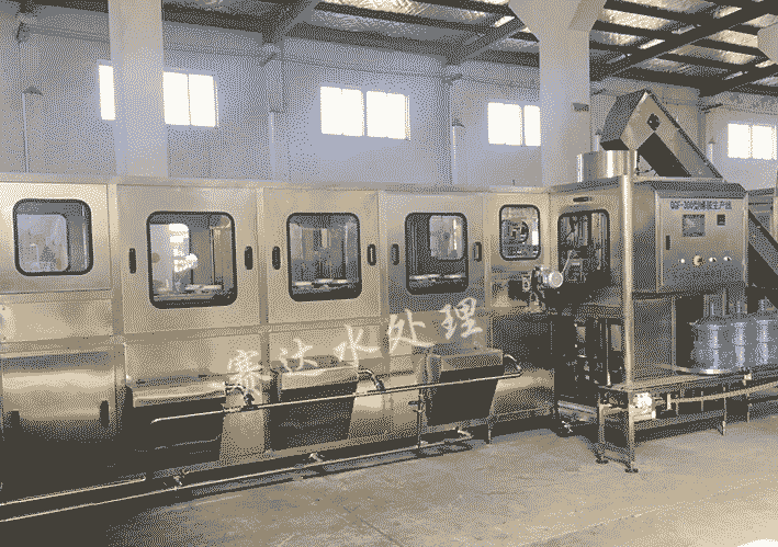 桶裝水生產線設備組成:自動拔蓋機、自動外洗桶機、自動上桶裝置、進/出桶輸送、桶裝水灌裝機、自動上蓋機、桶蓋在線消毒機、燈檢設備、自動套標機、蒸汽縮膜機、激光噴碼機、自動套袋機、碼垛機。